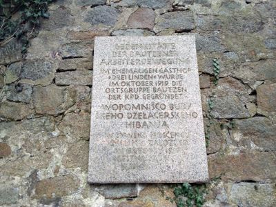 Gedenktafel Dresdener Straße 1, Gedenktafel für Bautzener Arbeiterbewegung; ortsgeschichtlich von Bedeutung