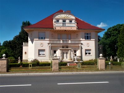 Villa mit Stützmauer und Einfriedung sowie Villengarten St.-Barbara-Platz 1