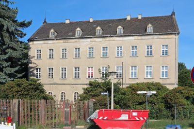 Am Damm 5, Stadtgeschichtlich und baugeschichtlich von Bedeutung, dreigeschossiges Verwaltungsgebäude, Gurtgesims, Wappenkartusche über der Eingangstür, Rundbogenfenster, Kranzgesims, Dachhäuschen, schmiedeeiserne Blitzableiter, das dazugehörige Gefängnis