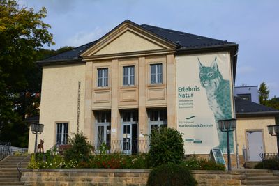 Nationalparkzentrum Sächsische Schweiz, frei stehender Saalbau mit Freitreppe und Giebelrisalit, baugeschichtlich und ortsgeschichtlich von Bedeutung. originale Leuchten erhalten