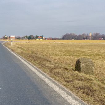 Streckenmarkierungsstein Nr. 1, Streckenmarkierungsstein Nr. 1 der Straße Pomßen–Bad Lausick, typische Ausführung in Sandstein mit oben abgerundetem Abschluss, verkehrsgeschichtlich von Bedeutung