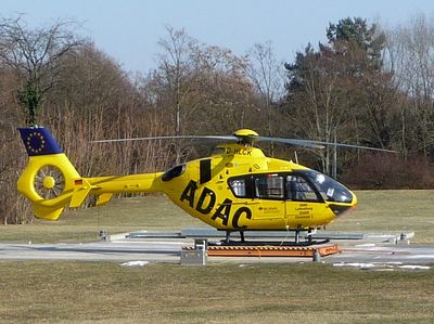 The Christoph 5 EC135 helicopter operates from its base with advanced medical equipment for rapid emergency response across the Rhineland-Palatinate region.