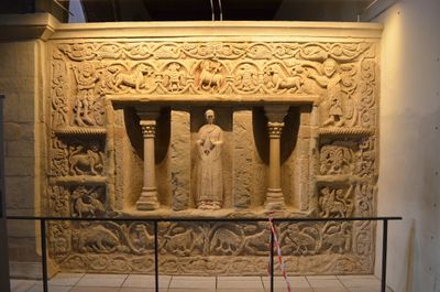 Craftsmen built this cenotaph between 1160 and 1180 in the Romanesque style within the southern nave. The work was created during a time when pilgrimage to holy sites was widespread and such replicas connected people spiritually to sacred places.