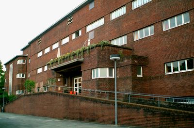 The Heinemanhof facility incorporates clean lines and rational structures, reflecting the functional principles of Bauhaus architecture through its geometric forms and simple design elements.
