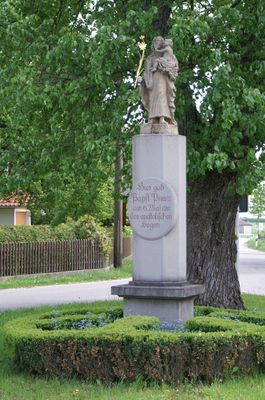 Denkmal zur Erinnerung an die Durchreise Papst Pius VI 1782, josefsfigur, spätes 18. Jahrhundert, auf oktogonaler Stele des 19. Jahrhunderts;