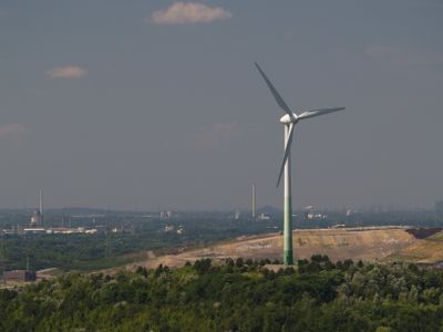 The Halde Hoppenbruch rises 113 meters above the surrounding landscape, featuring a wind turbine at its summit and multiple hiking trails along its slopes.