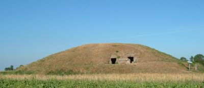 The passage grave was built during the Neolithic period when communities constructed monumental structures for burials. Eighteenth-century excavations uncovered skeletal remains and objects that confirmed the site's importance as a long-term burial ground.