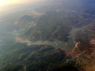 The dam receives water from two upstream reservoirs that together form a connected water system for the region. This network of multiple structures shows how the region manages its water flow and storage efficiently.