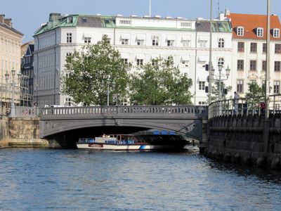Højbro is an iron bridge spanning Slotsholmens Kanal, connecting Slotsholmen island with its Christiansborg Palace to central Copenhagen at Højbro Plads square. The structure rests on granite plinths and was widened to its current dimensions during the 1960s.