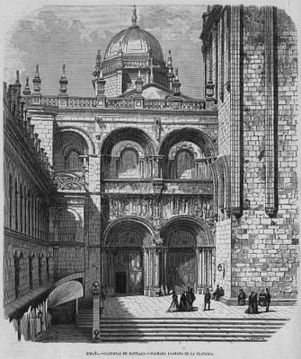 Fachada das Praterías, Romanesque facade at Cathedral of Santiago de Compostela, Spain