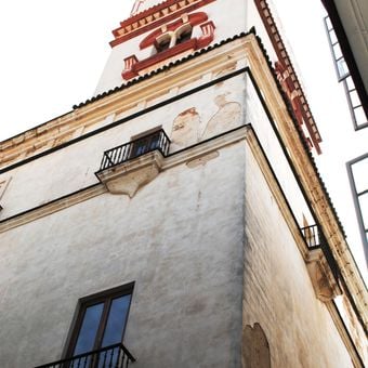 The Torre Tavira is an 18th-century watchtower in central Cádiz that rises about 45 meters above sea level and contains two exhibition rooms. The structure features a terrace at the top offering sweeping views of the city and surrounding coastal area.