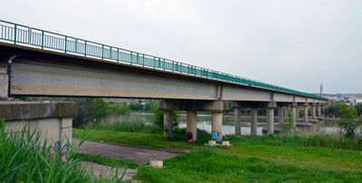 The Puente de Camas stretches across the Guadalquivir River with a width of 15 meters and a clearance height of 7 meters beneath the structure.