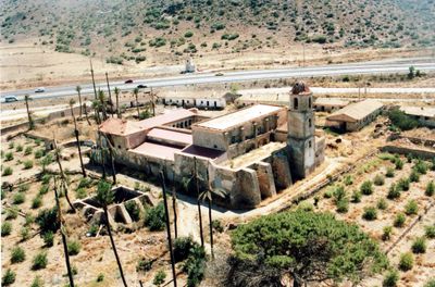 The Monastery of San Ginés de la Jara is a complex blending Renaissance and Baroque architectural forms, located on a hilltop near Cartagena close to the Mar Menor lagoon. The site is enclosed by a stone perimeter wall with several entry points that lead to the main structures within.