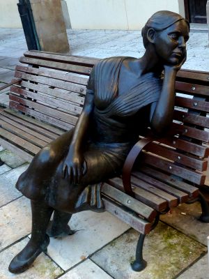 La bella Lola, Bronze sculpture in Plaza del Fontán, Oviedo, Spain.