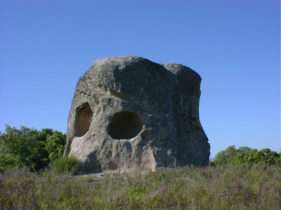 The site features a distinctive stone formation with two large holes resembling eyes, which researchers connect to Chalcolithic period oculated idols.