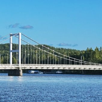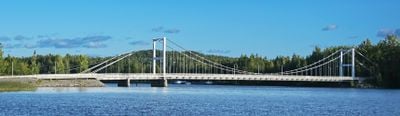 The Louhunsalmi Suspension Bridge extends 178 meters across Lake Paijanne, connecting the areas of Lehtisaari and Säynätsalo with two traffic lanes and a pedestrian walkway.