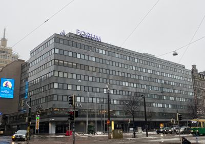 The building represents minimalist modernism architecture and stands at the boundary between the Kluuvi and Kamppi districts of Helsinki.