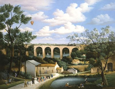 The Barbin Viaduct spans 300 meters across the Sèvre Nantaise River with 14 granite arches reaching a height of 38 meters.