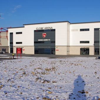 Globe Arena is a football stadium in Morecambe with a seating capacity of around 6,500 spread across multiple stands and terraces. The ground includes the Peter McGuigan Stand, Bay Radio Stand, Omega Holidays Stand, and an open terrace section for different viewing preferences.
