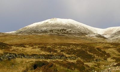 The boulder-covered dome of Càrn a' Chlamain rises to 963 meters above sea level, forming a prominent feature on the eastern edge of Glen Tilt.