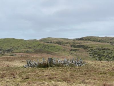 Located on an elevated position in Meirionnydd, this burial monument dates from the late third millennium BC and contains evidence of a central cist grave.