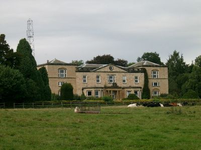 Becca Hall exhibits traditional English architectural features with a symmetrical facade and a prominent entrance located in the Yorkshire countryside.