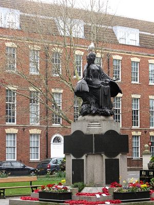 Sculptor John Angel completed this Grade II listed memorial in 1924, commemorating local soldiers who died in conflicts from World War I through Afghanistan.