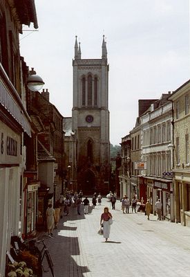 The Church of St Michael the Greater stands on the south side of High Street with a stone tower and Early English architectural elements.