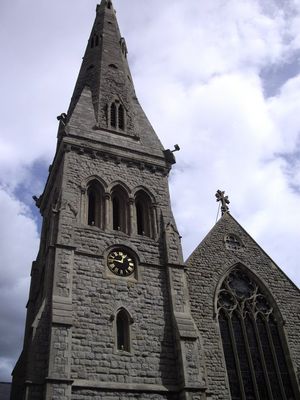 The Church of St Yeghiche stands with its stone facade facing Cranley Gardens, featuring tall windows and architectural elements of traditional English design.