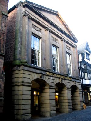 The Chester City Club occupies a Grade II listed building featuring yellow ashlar stone at the front and brown brick on the sides and rear.