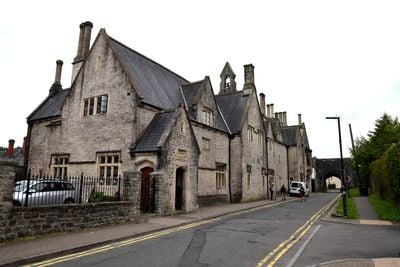 The Gothic and Victorian architecture of Cowbridge Grammar School features stone walls, high windows, and ornate decorative elements throughout its exterior design.