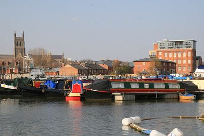 Diglis Basin is a canal harbour in Worcester where the Worcester and Birmingham Canal meets the River Severn. A lock system allows boats to pass between the two different water levels.