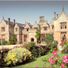 The stone mansion features large windows, symmetrical architecture, and extensive grounds with gardens established during renovations in the 1980s.