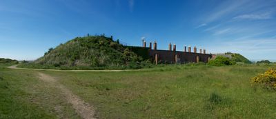 Fort Gilkicker contains 22 casemates arranged in a semi-circular arc, with ten distinct chimney stacks visible from the approach road at Stokes Bay.