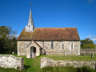 The church's construction dates to 1100, serving the marshland population between Pulborough and Amberley, with shepherds forming the main congregation.