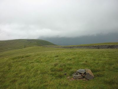 The County Stone, a glacial erratic boulder near the summit, historically marked the meeting point of Westmorland, Yorkshire, and Lancashire borders.