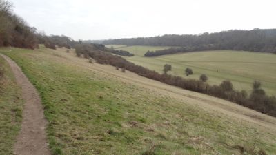 Happy Valley Park spans 101 hectares of land featuring chalk grasslands, wooded slopes, and nature trails through diverse ecological zones.