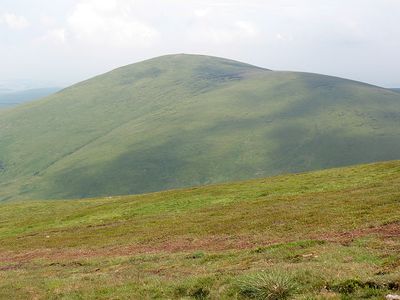 The second-highest peak in the Cheviot Hills reaches 714 meters with steep sides and provides extensive views across the northern English countryside.