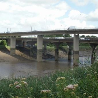 The M4 motorway Usk bridge consists of two parallel structures, each measuring 450 feet in length with five spans of reinforced concrete construction.