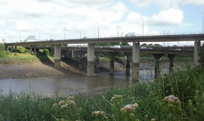 The bridge leads directly into the Brynglas Tunnels on its westbound route, creating a continuous transport corridor through Newport's urban landscape.