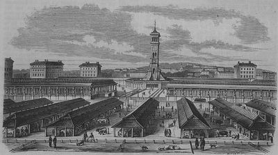 Prince Albert inaugurated this market in June 1855 to replace the overcrowded Smithfield market, establishing a new center for London's livestock trade.