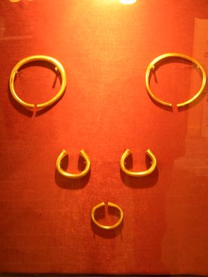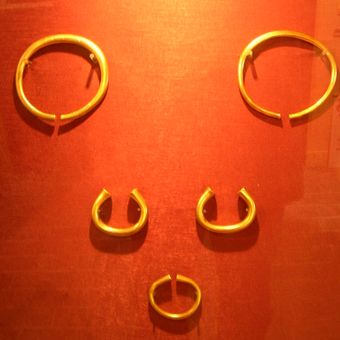 The objects show the skill of Bronze Age metalworkers and how they shaped gold with precision. You can see the careful detail in how each piece was made and decorated.
