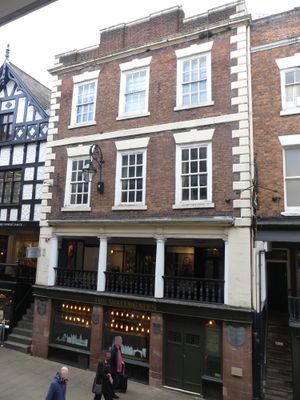 The building belongs to the Chester Rows, a collection of galleried walkways connecting historical structures throughout the city center.