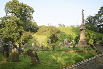 The earthwork motte of Penwortham Castle stands on the south bank of River Ribble, marking the location of a former Norman fortification.