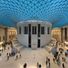 The Queen Elizabeth II Great Court features a tessellated glass roof spanning the entire central courtyard of the British Museum, surrounding the circular Reading Room.