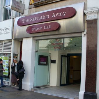The building remains one of the oldest Salvation Army centers in London, positioned among the retail establishments of Oxford Street.