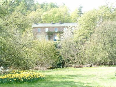 The granite structure of Rickarton House stands on elevated grounds near the Cowie Water, featuring traditional Scottish architectural elements and period details.
