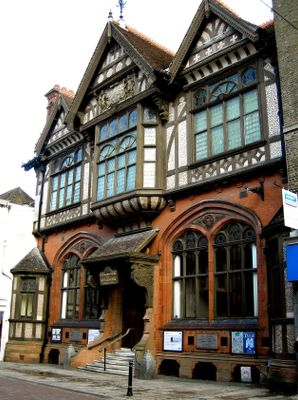The Beaney House of Art and Knowledge exhibits artworks, historical artifacts, and cultural collections in a Grade II listed building with Tudor Revival architecture.