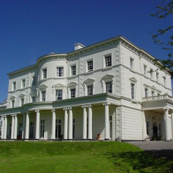 Southwick House is a late Georgian manor house north of Portsmouth, featuring classical architectural elements and symmetrical proportions throughout. The building stands on extensive grounds and currently serves as headquarters for the Defence School of Policing and Guarding.