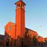 The red-brick church displays Romanesque architecture with a tall campanile that forms a recognizable structure along Portland Road.